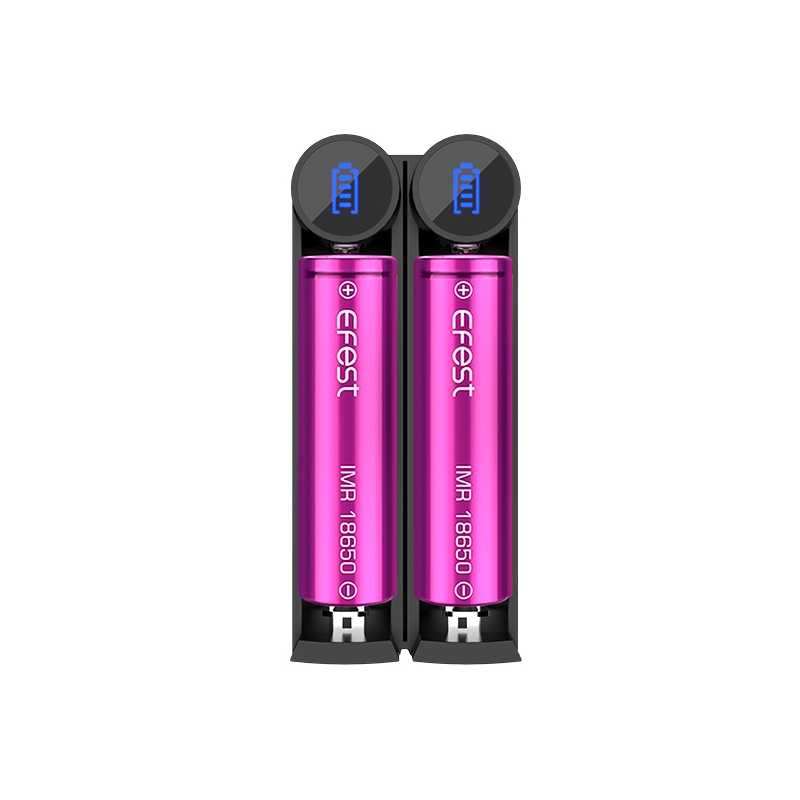 Le chargeur Slim K2 d'Efest est un chargeur double accu, qui les rechargera rapidement sous 1A et d'une tension de 5V. Il peut accueillir des accus de plusieurs formats : 18650, 20700, 26650, 10440, 14500, 16340, 17340, 18350, 18500 et 26500 de 3.6 à 3.7V Li-ion et LiMn.