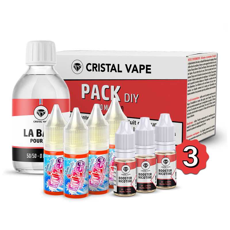 Pack DIY Bloody Summer 240ml conçu pour réaliser votre mélange simplement. Ce pack est composé de 4 concentrés 10ml Bloody Summer et d'un Pack DIY 50/50 200ml de Cristal Vape contenant de la base neutre et des boosters de nicotine.
