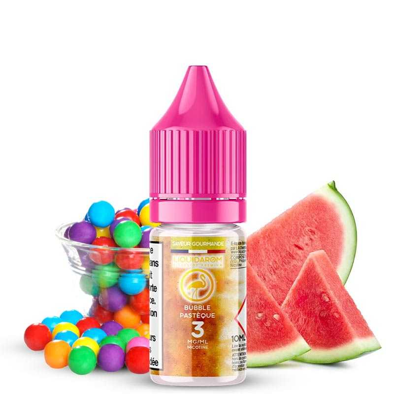 Ravivez vos souvenirs d’enfance le temps d’une délicieuse séance de vape ! Avec Bubble Pastèque de Liquidarom, vous retrouverez le bon goût de vos friandises d’autrefois… Mais avec les calories en moins. En effet, cet e-liquide restitue avec un réalisme déconcertant les saveurs inimitables de vos chewing-gums roses préférés. Les aromaticiens rajoutent ensuite quelques notes de pastèques pour une touche de fraîcheur et de gourmandise en plus. Que demander de mieux ?