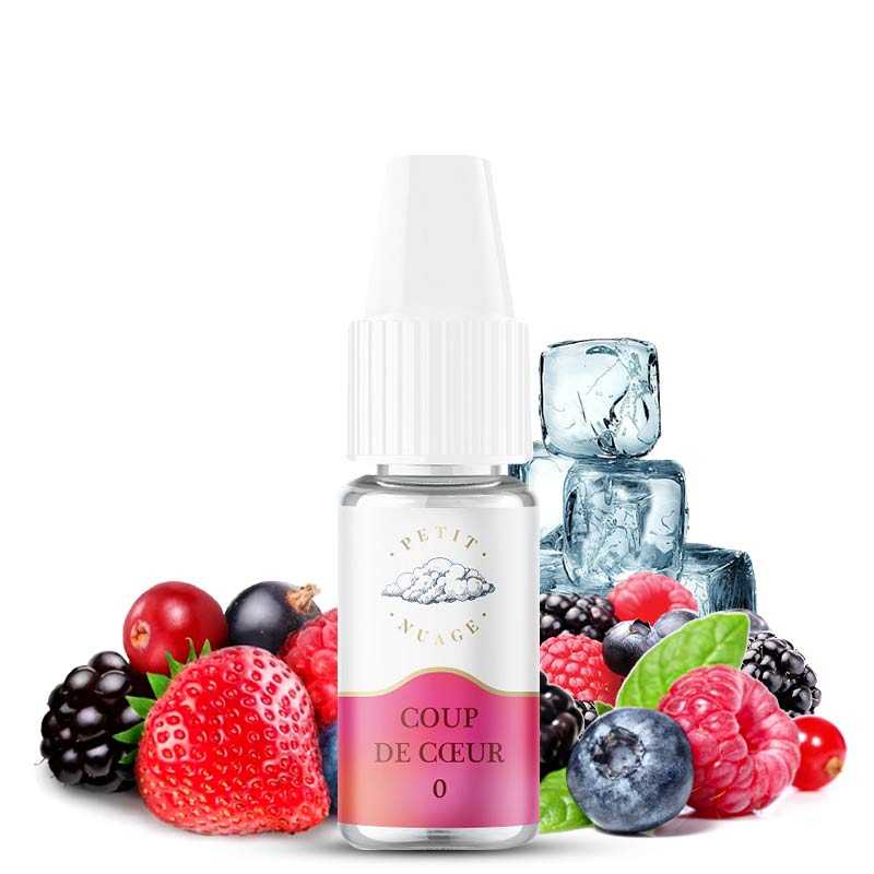 L’e-liquide Coup de Cœur de la célèbre gamme Petit Nuage est une délicieuse recette à base de fruits rouges. Pour un maximum de fraîcheur, laissez-vous succomber par les saveurs sucrées et acidulées des baies sauvages. Généreusement mixés, les fruits rouges tels que la framboise, la mûre, le cassis et la fraise des bois vous proposent un mélange de saveurs acidulées et sucrées pour une sensation exceptionnelle. Vous aurez l’impression de vapoter au cœur de la forêt.