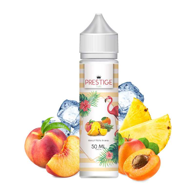 Pénétrez dans l’univers de la vape grâce au e-liquide Abricot Pêche Ananas de la gamme Prestige Fruits par la marque Vape Connection. Il offre l’occasion d’expérimenter un mélange de fruits à base de pêche, d’abricot et d’ananas riche en eau. Des saveurs complémentaires formant une recette simple qui vous réserve pourtant des moments de vapotage mémorables !