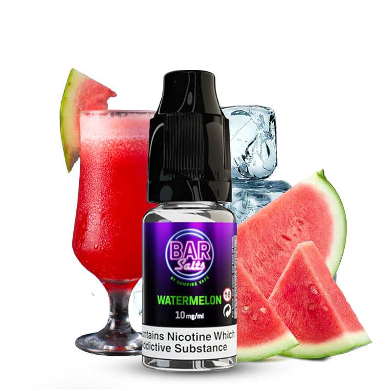 "Les e-liquides Bar Salt sont fabriqués au Royaume-Uni par la marque Vampire Vape. Cette gamme de e-liquides aux sels de nicotine s’adresse principalement aux vapoteurs débutants. En effet, ils procurent plus rapidement un sentiment de satiété, favorisant une transition en douceur vers la cigarette électronique. Plus important encore, chaque e-juice propose des saveurs fruitées fraîches, parfaitement restituées. Vous tomberez notamment sous le charme de Blue Razz Lemonade, la limonade aromatisée à la framboise bleue. Mais si vous préférez goûter à des fruits bien mûrs et gorgés de soleil, vous allez adorer Watermelon. Les e-liquides Bar Salt de Vampire Vape sont disponibles en flacon de 10 ml, aux sels de nicotine."
