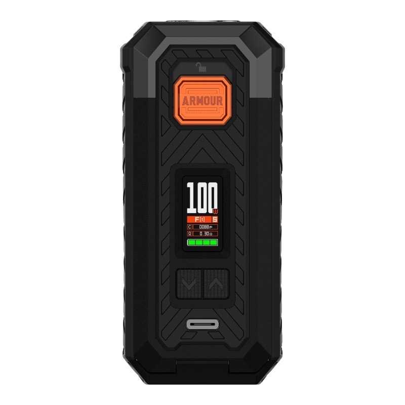 En plus d'être solide et résistante, la box Armour S se paye le luxe d'un poids et de dimensions maitrisés. En façade, on retrouve un switch uni-lock permettant à la fois de vaper et de locker votre box, afin d'éviter les accidents.