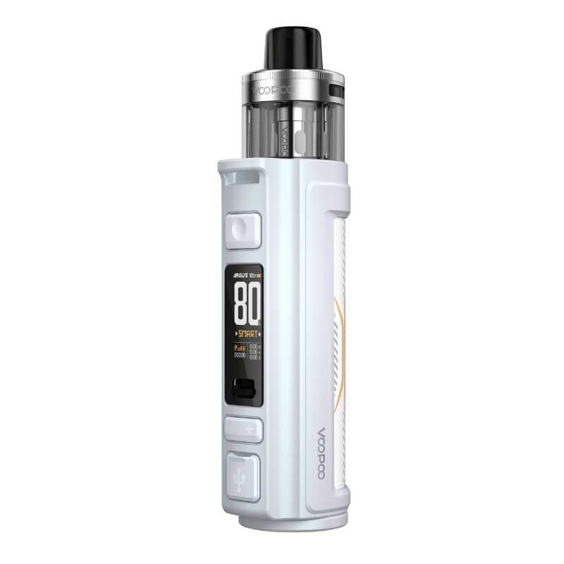 Le Kit Argus Pro 2 par Voopoo se présente comme un pod ergonomique, arborant un écran TFT couleur permettant de surveiller l'autonomie restante, la valeur de la résistance et la puissance en watts, avec la possibilité de monter jusqu'à 80 watts. Il dispose d'un batterie intégrée généreuse de 3000mAh.